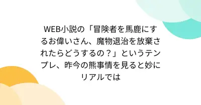 WEB小説の「冒険者を馬鹿にするお偉いさん、魔物退治を放棄されたらどうするの?」というテンプレ、昨今の熊事情を見ると妙にリアルでは