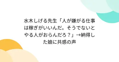 水木しげる先生「人が嫌がる仕事は稼ぎがいいんだ。そうでないとやる人がおらんだろ?」→納得した娘に共感の声