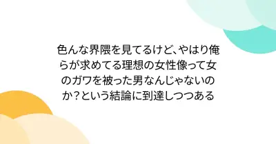 色んな界隈を見てるけど、やはり俺らが求めてる理想の女性像って女のガワを被った男なんじゃないのか?という結論に到達しつつある