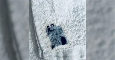 子どもが宿泊学習に行くので、バスタオルに名前の代わりにスンスンの刺繍して縫い付けてみた「めちゃくちゃお上手」→とはいえ、名前は書いておいたほうがいいという話