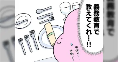 「隣の席の人の使ってた」 冠婚葬祭の度、たくさん置かれた食器を見てテーブルマナーを義務教育で習いたいと思う、ただ『「ぼくには関係ないや〜」で忘れるのがオチ』