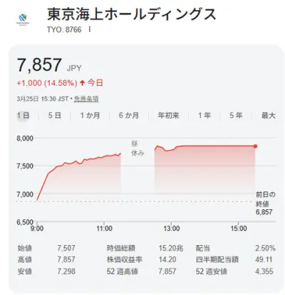 東京海上株価、バークシャー出資で連日ストップ高