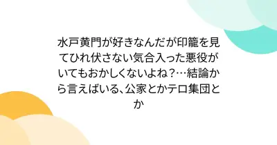 水戸黄門が好きなんだが印籠を見てひれ伏さない気合入った悪役がいてもおかしくないよね?…結論から言えばいる、公家とかテロ集団とか