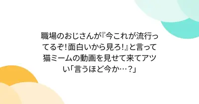 職場のおじさんが『今これが流行ってるぞ!面白いから見ろ!』と言って猫ミームの動画を見せて来てアツい「言うほど今か…?」
