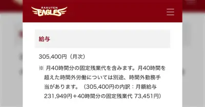 「うーん、この」東北楽天イーグルスの求人、月23万円にみなし残業40時間分の給与と疑問を呈する反応もあるが、納得の声も「まあ、4時間超の試合もありますしね...」