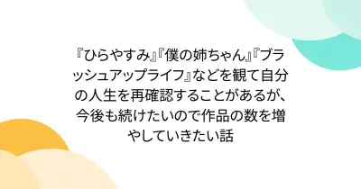 『ひらやすみ』『僕の姉ちゃん』『ブラッシュアップライフ』などを観て自分の人生を再確認することがあるが、今後も続けたいので作品の数を増やしていきたい話