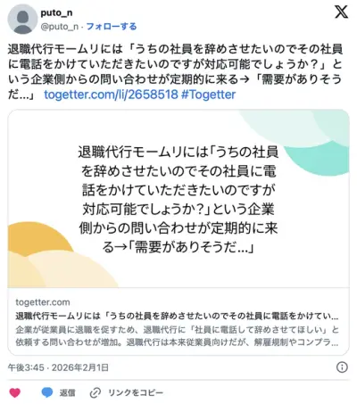 モームリ「企業からうちの社員を辞めさせたい、という電話が定期的に来る」