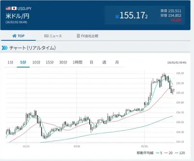 【為替相場】ウォーシュ次期FRB理事のタカ派姿勢懸念や高市首相発言で円売りスタート 1ドル155円台前半推移 地政学リスク後退の影響もあり金は大幅に調整中