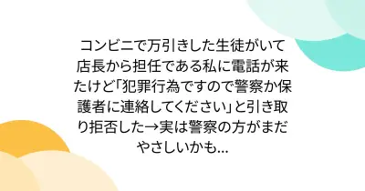 コンビニで万引きした生徒がいて店長から担任である私に電話が来たけど「犯罪行為ですので警察か保護者に連絡してください」と引き取り拒否した→実は警察の方がまだやさしいかも...