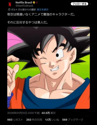 【朗報】Netflix「悟空は間違いなくアニメで最強のキャラクターだ。それに反対する奴は素人だ。」
