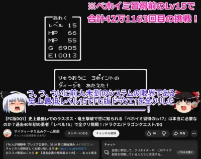 【偉業】ドラクエやり込み系YouTuberさん、DQ1低レベルクリアの記録を更新