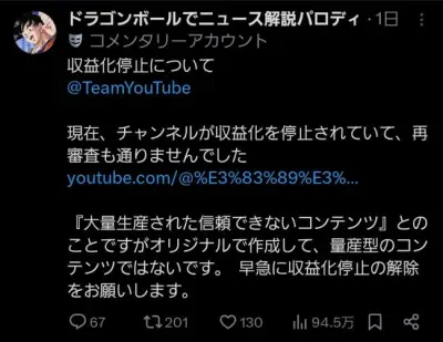 【悲報】ドラゴンボールでニュース解説さん、収益化停止されてブチ切れwwwwwwwwwwwwwwwwww