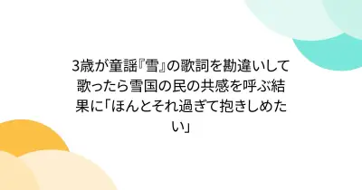3歳が童謡『雪』の歌詞を勘違いして歌ったら雪国の民の共感を呼ぶ結果に「ほんとそれ過ぎて抱きしめたい」