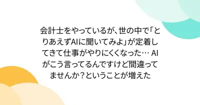 会計士をやっているが、世の中で「とりあえずAIに聞いてみよ」が定着してきて仕事がやりにくくなった… AIがこう言ってるんですけど間違ってませんか?ということが増えた