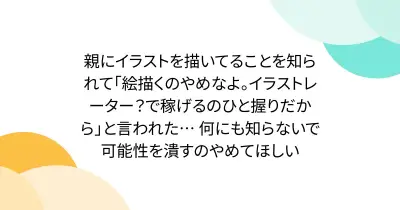 親にイラストを描いてることを知られて「絵描くのやめなよ。イラストレーター?で稼げるのひと握りだから」と言われた… 何にも知らないで可能性を潰すのやめてほしい