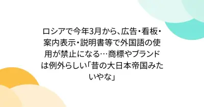 ロシアで今年3月から、広告・看板・案内表示・説明書等で外国語の使用が禁止になる…商標やブランドは例外らしい「昔の大日本帝国みたいやな」