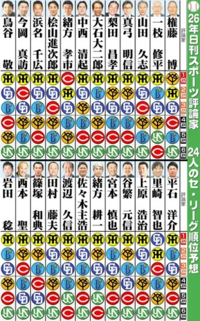 解説者の2026セリーグ順位予想wwwwwwwwwww