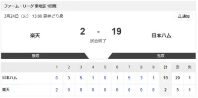 悲報楽天2軍19失点