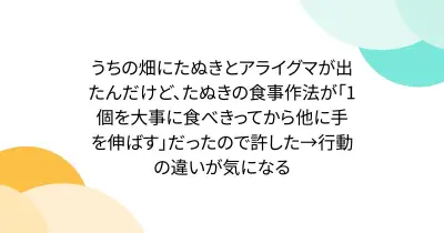 うちの畑にたぬきとアライグマが出たんだけど、たぬきの食事作法が「1個を大事に食べきってから他に手を伸ばす」だったので許した→行動の違いが気になる