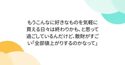 もうこんなに好きなものを気軽に買える日々は終わりかも、と思って過ごしているんだけど、散財がすごい「全部値上がりするのかなって」