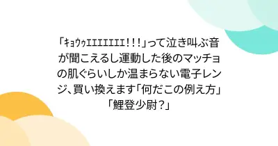 「キョウゥエエエエエエエ!!!」って泣き叫ぶ音が聞こえるし運動した後のマッチョの肌ぐらいしか温まらない電子レンジ、買い換えます「何だこの例え方」「鯉登少尉?」