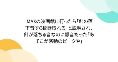 IMAXの映画館に行ったら「針の落下音すら聞き取れる」と説明され、針が落ちる音なのに爆音だった「あそこが感動のピークや」