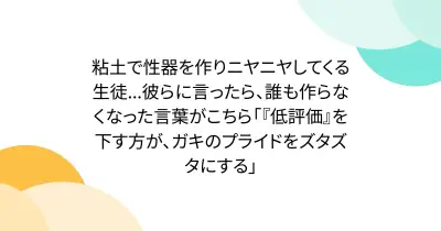 粘土で性器を作りニヤニヤしてくる生徒...彼らに言ったら、誰も作らなくなった言葉がこちら「『低評価』を下す方が、ガキのプライドをズタズタにする」