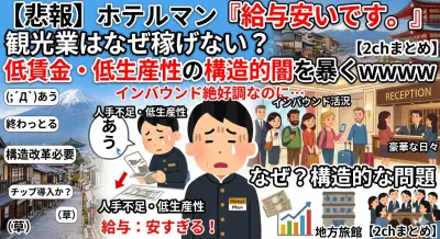 ホテルマン「給料安すぎて草w」1泊数万円でも観光業が低賃金に喘ぐ理由 →