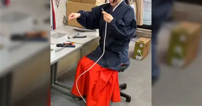 ある神社の巫女さんが内職でCAT6AのLANケーブルを自作する光景「原因不明の通信障害に強そう」「加護欲しい」と話題になる