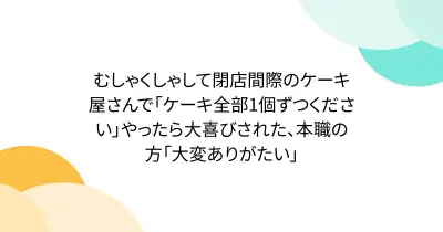 むしゃくしゃして閉店間際のケーキ屋さんで「ケーキ全部1個ずつください」やったら大喜びされた、本職の方「大変ありがたい」