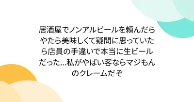 居酒屋でノンアルビールを頼んだらやたら美味しくて疑問に思っていたら店員の手違いで本当に生ビールだった...私がやばい客ならマジもんのクレームだぞ