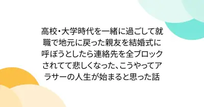 高校・大学時代を一緒に過ごして就職で地元に戻った親友を結婚式に呼ぼうとしたら連絡先を全ブロックされてて悲しくなった、こうやってアラサーの人生が始まると思った話