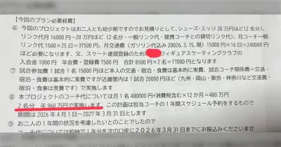 幼い双子が習っているフィギュアスケートのコーチを専属契約にした場合の見積もり、2人で年間指導料960万、総額1500〜2000万だった→高すぎる?妥当?