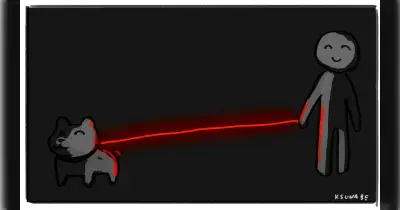近所の犬さん、夜間だとリードが赤く光るタイプでバイオハザードのレーザーみたいに迫ってくる「スパァンッ‼️ってなるやつ!」「安全に散歩できるしグッドアイデア」