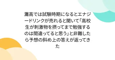 灘高では試験時期になるとエナジードリンクが売れると聞いて「高校生が刺激物を摂ってまで勉強するのは間違ってると思う」と非難したら予想の斜め上の答えが返ってきた