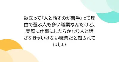 獣医って『人と話すのが苦手』って理由で選ぶ人も多い職業なんだけど、実際に仕事にしたらかなり人と話さなきゃいけない職業だと知られてほしい