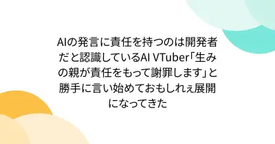 AIの発言に責任を持つのは開発者だと認識しているAI VTuber「生みの親が責任をもって謝罪します」と勝手に言い始めておもしれぇ展開になってきた