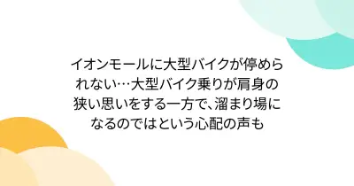 イオンモールに大型バイクが停められない…大型バイク乗りが肩身の狭い思いをする一方で、溜まり場になるのではという心配の声も