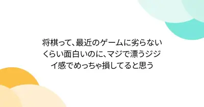 将棋って、最近のゲームに劣らないくらい面白いのに、マジで漂うジジイ感でめっちゃ損してると思う