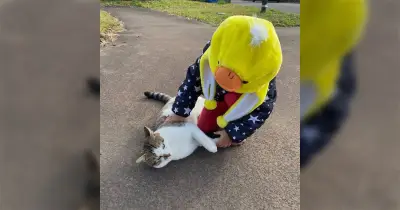 こういうのだけ見ていたい 公園で寝ていた猫ちゃんを見つけて『お腹いたいの?病院行く?』と心配して声かけする三歳児