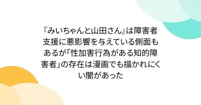『みいちゃんと山田さん』は障害者支援に悪影響を与えている側面もあるが「性加害行為がある知的障害者」の存在は漫画でも描かれにくい闇があった
