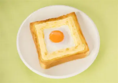 食パンにマヨネーズで四角に囲って生卵を載せて焼いたトーストあるやん