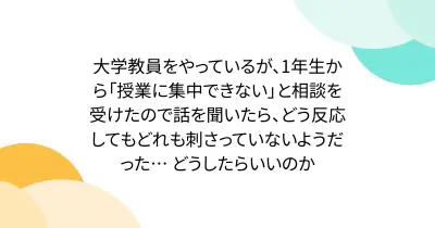 大学教員をやっているが、1年生から「授業に集中できない」と相談を受けたので話を聞いたら、どう反応してもどれも刺さっていないようだった… どうしたらいいのか