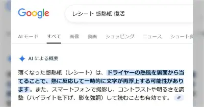 Googleでレシートの文字を復活させる方法を検索して出て来たものを試したら真っ黒になったんだが…?「それはそうよ」「そりゃ感熱紙だしまぁ」