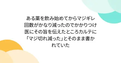 ある薬を飲み始めてからマジギレ回数がかなり減ったのでかかりつけ医にその旨を伝えたところカルテに「マジ切れ減った」とそのまま書かれていた