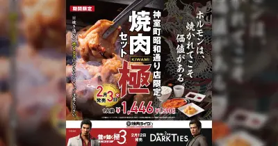 「焼肉ライク」が「龍が如く極3/3外伝DarkTies」とコラボして新宿歌舞伎町店が神室町昭和通り店に変化、ここ限定でホルモン10人前が頼めるの激アツ