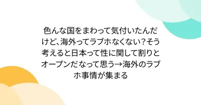 色んな国をまわって気付いたんだけど、海外ってラブホなくない?そう考えると日本って性に関して割りとオープンだなって思う→海外のラブホ事情が集まる