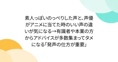 素人っぽいのっぺりした声と、声優がアニメに当てた時のいい声の違いが気になる→有識者や本業の方からアドバイスが多数集まってタメになる「発声の仕方が重要」