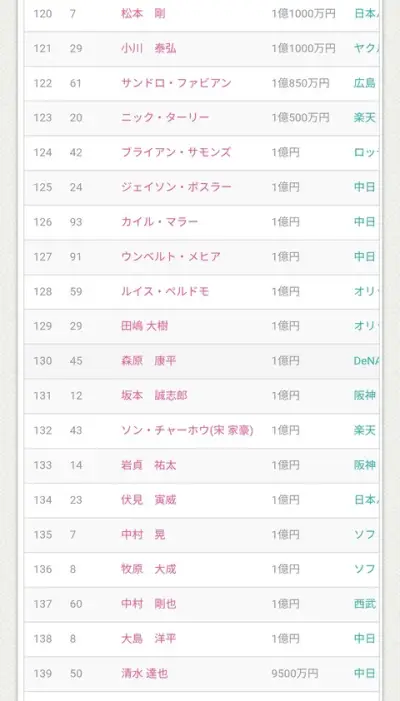 2025年NPBの1億円プレーヤー(年俸1億円以上)は138人!