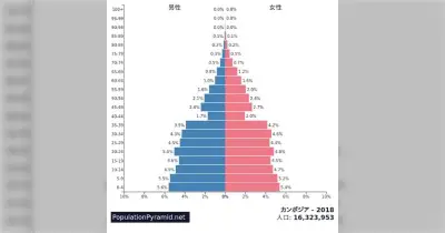 カンボジアの人口ピラミッド、いつ見てもグロい「ある世代の人たちがゴッソリいなくなってて怖い」「デカい大粛清や大虐殺があった国はこうなりがち」